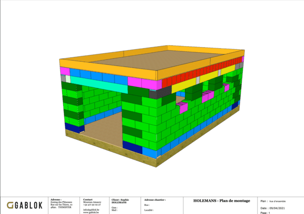 Construction d’un garage en kit Gablok sur un plancher en bois.